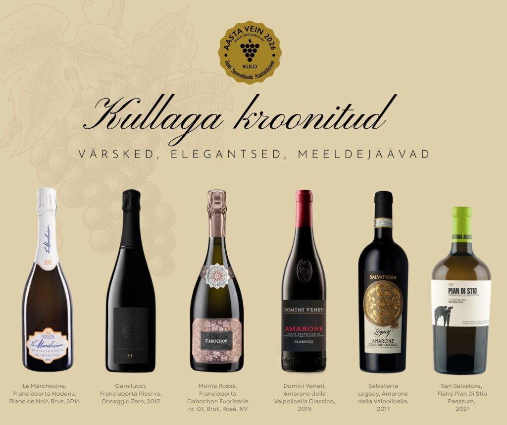 Meil on väga hea meel jagada, et ka sel aastal tõid meie veinid Eesti Sommeljeede Assotsiatsiooni korraldatud „Aasta vein“ konkursilt suurepärased tulemused – kokku 13 medalit: 6 kulda, 2 hõbedat ja 5 pronksi.